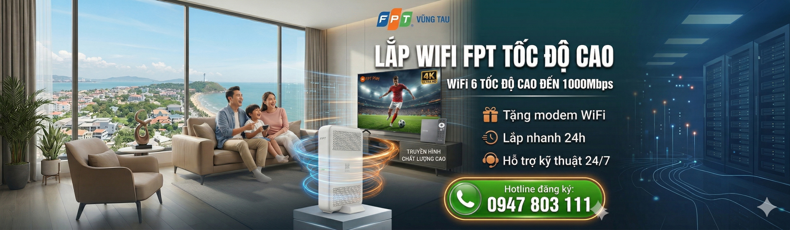 Miễn phí Modem WiFi 6 thế hệ mới. – Phí triển khai 300k. – Gói 12 tháng tặng 01 tháng.